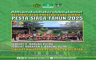 Alhamdulillah.. Berkah Rahmat Allah.. Pesta Siaga Tingkat Kecamatan Pekalongan Selatan. MI Salafiyah Kuripan Lor Masih diberi kesempatan untuk membawa 2 Tropi. Selamat barung putra dan barung putri.. #siagasehatsportifedukatifhebataktiftangkas